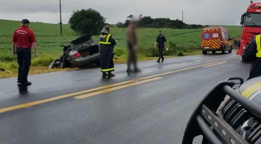 Uma colisão frontal envolvendo uma carreta, placas de São Miguel do Oeste e um veículo Toyota corola, placas de Missal/PR, ocorreu na tarde desta quinta-feira (04), em Dionísio Cerqueira, na BR-373 proximidades da ASMODIBA, onde na semana passada três jovens perderam a vida em um grave acidente.