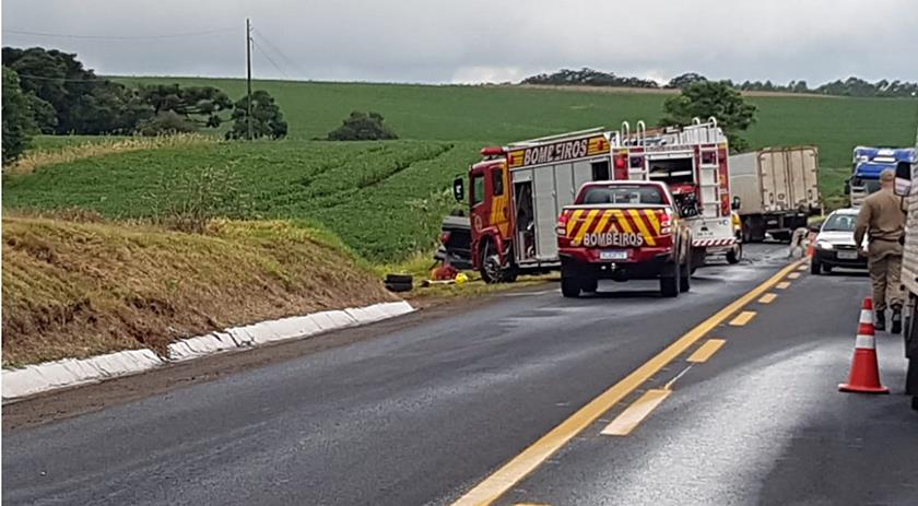Corpo de Bombeiros, SAMU, Polícia Militar e PRF estão no local, prestando o atendimento e controlando o trânsito que está em meia pista.